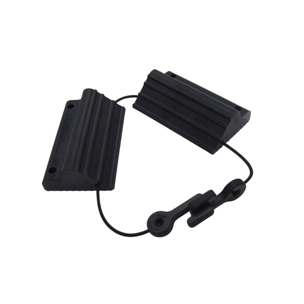Cales roue ultra-légères, très efficaces grâce à un système d'élastiques qui maintient les cales serrées dès que l'avion bouge. Possibilité de rajouter des piquets pour amélioré la tenu sur les terrains en herbe.