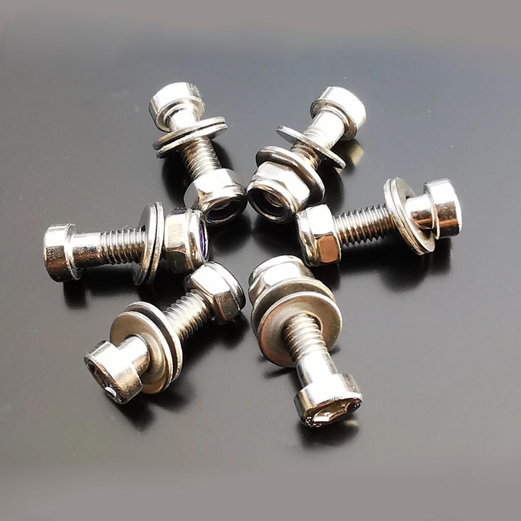 Ensemble comprenant 6 vis CHC tête basse M6x20, 6 écrous nysltop et 12 rondelles pour assemblage des jantes 6" EVOSKIL.