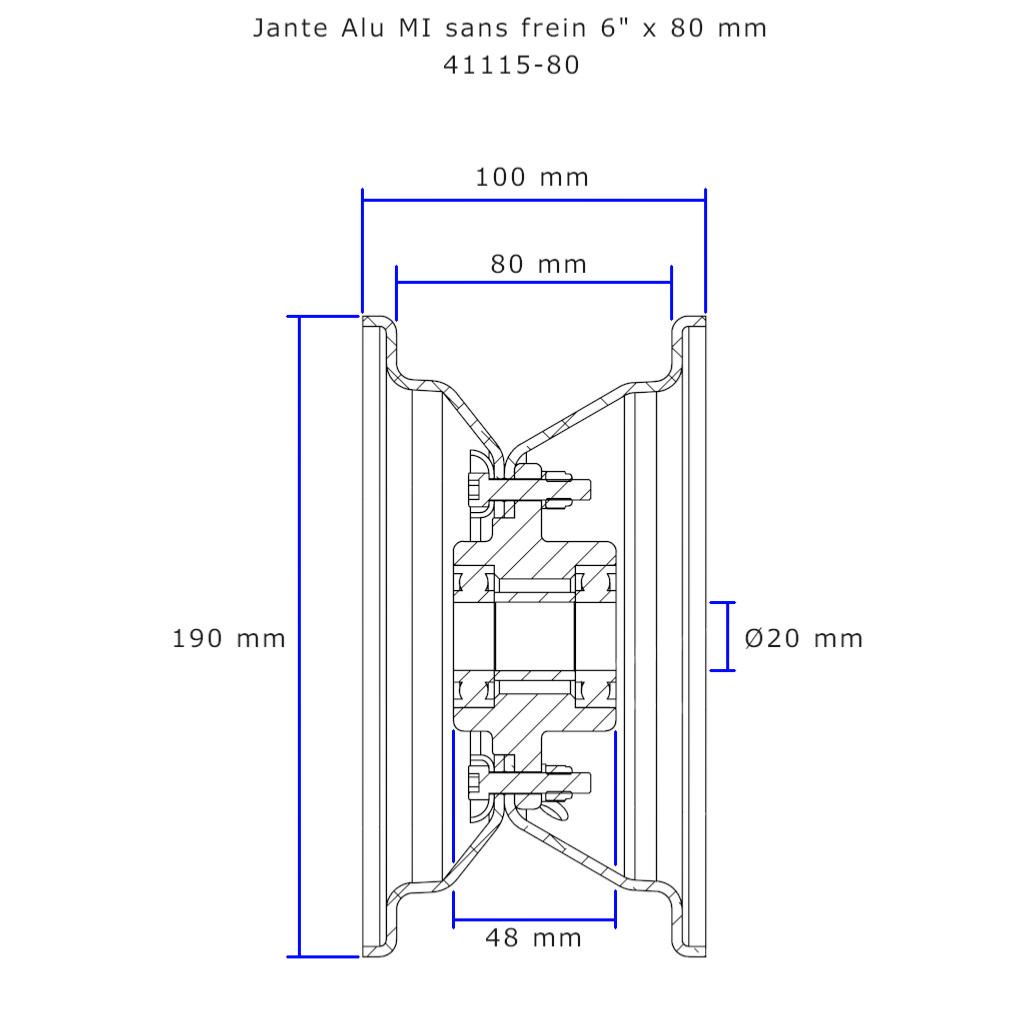 Jante Alu Marc Ingegno sans frein 6" x 80 mm avec un roulement diamètre 20 mm .