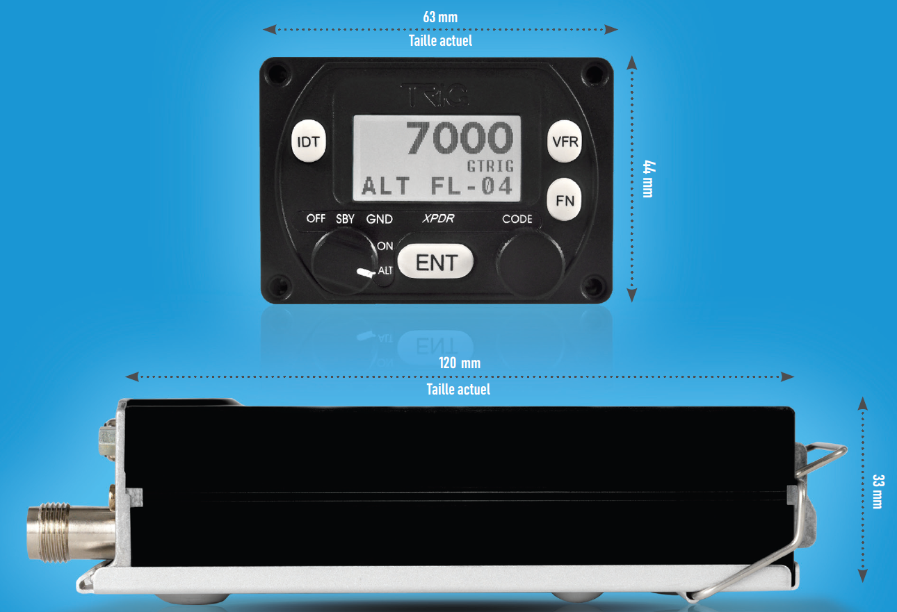 Le transpondeur TT23 est une solution modulaire à deux éléments, composée d’un boîtier émetteur-récepteur et d’une tête de commande séparée.Réputé pour sa taille réduite, le contrôleur TC20 s’installe dans un trou rond de 57 mm, avec une option de montage encore plus compact. Une fois installé, la profondeur du contrôleur n’est que de 54 mm, et avec le faisceau de câblage, elle atteint à peine 85 mm. Le boîtier transpondeur peut être monté n’importe où dans la cellule. Le TC20 intègre également un codeur d’altitude, économisant ainsi de la place et du poids supplémentaires.